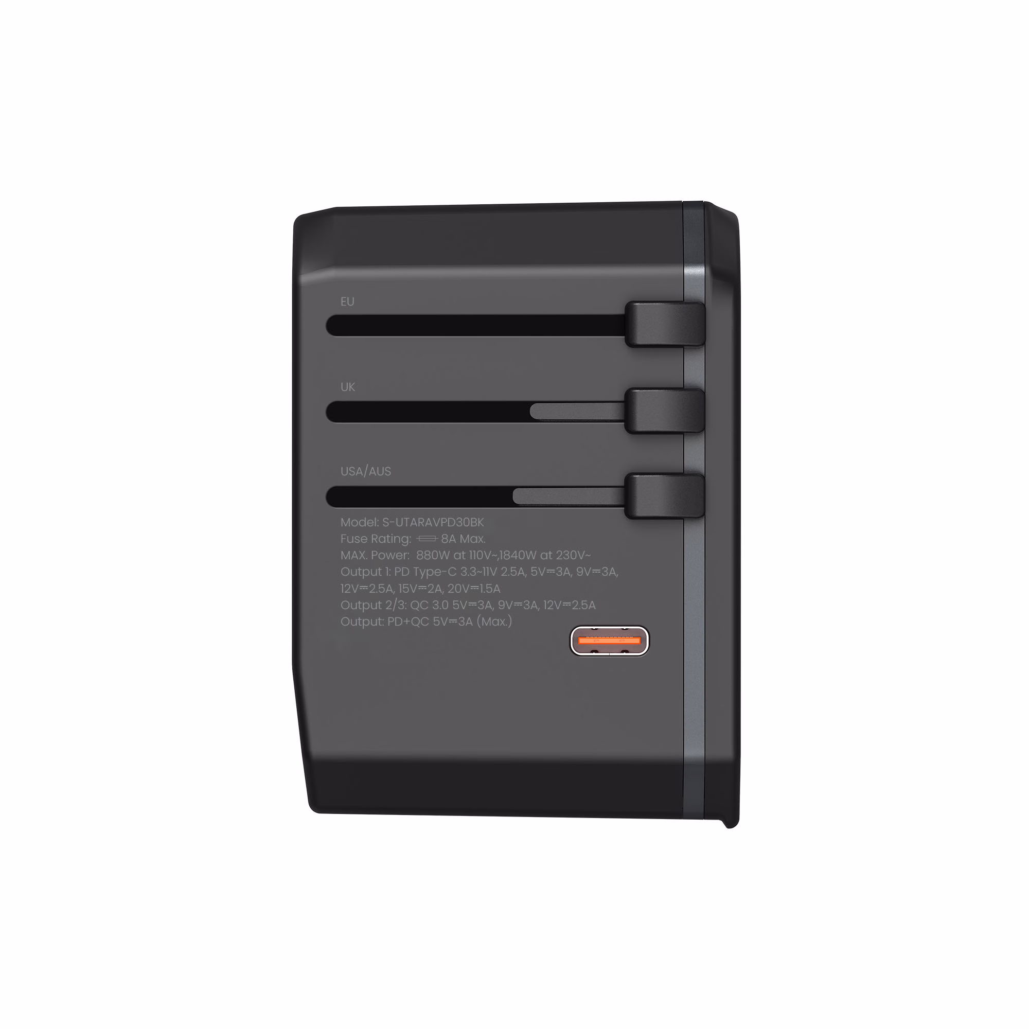 RAVE Series Universal Travel Adapter PD 30W + QCx2- Black